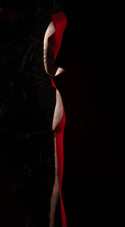 Something strange started happening in 2019. I had come back to my passion for working with the color red, and found myself removing colors from the background to isolate this rich, passionate hue. Broken shards still built the body up, and I continued incorporating the mannequins, but suddenly they seemed more organic while the human form started to feel more rigid, robotic, or stone-like. I also began working more with plexiglass, which gave a more faint, subtle reflection, while the shards still provided a crisp, sharp one.
